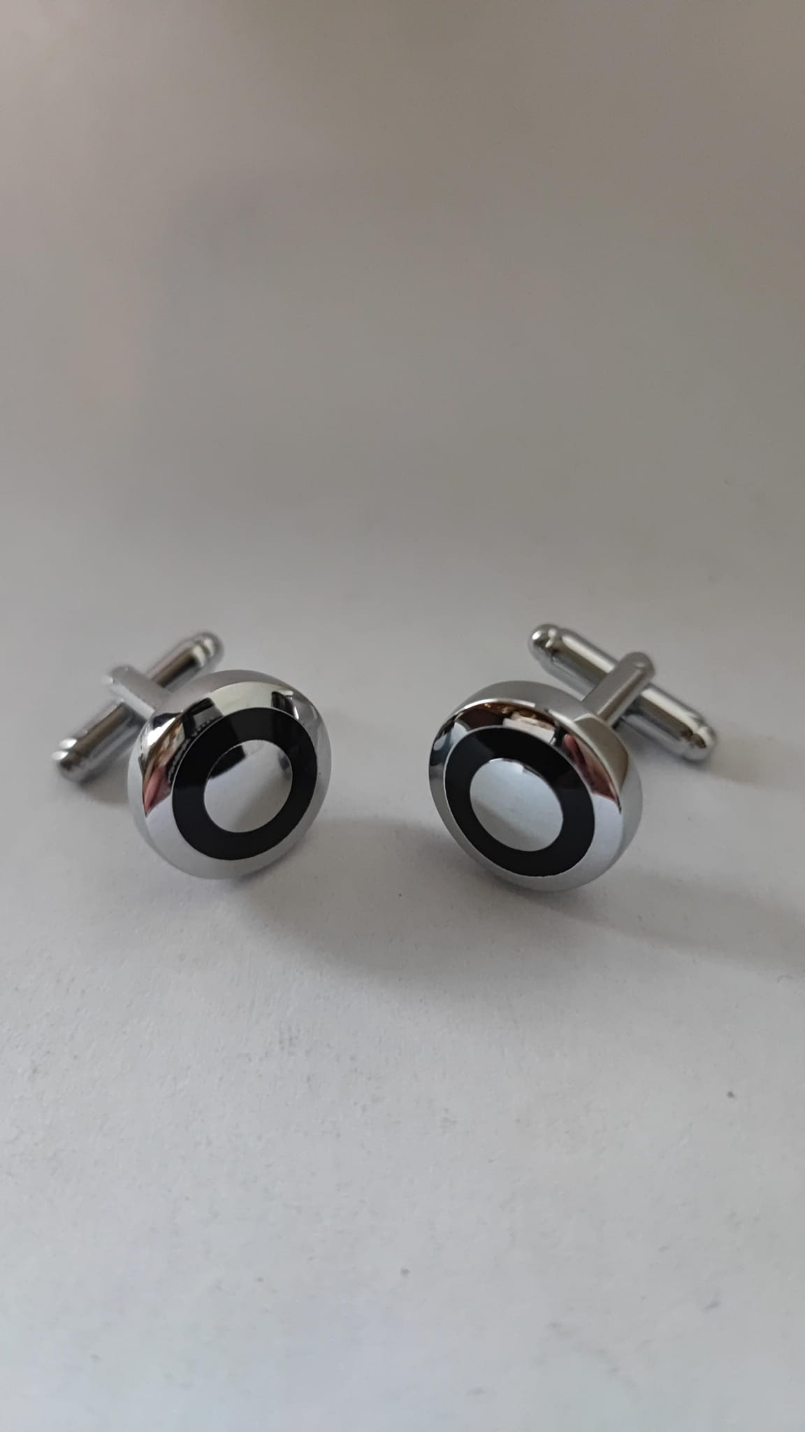 Okrągłe spinki do mankietów w kolorze srebrnym z czarnym emaliowanym kołem