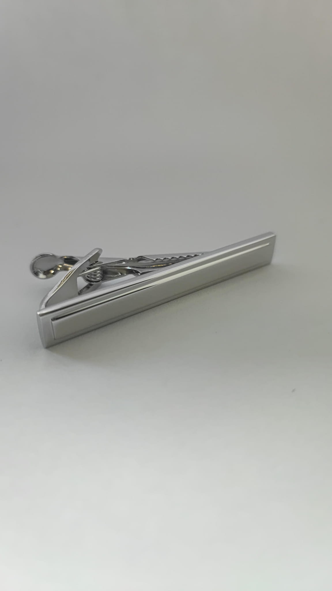 Spinka do krawata w kolorze srebrnym błyszcząca klasyczna Długość spinki 50 mm Szerokość 5 mm Oferowane przez nas spinki zapakowane są w eleganckie czarne pudełko