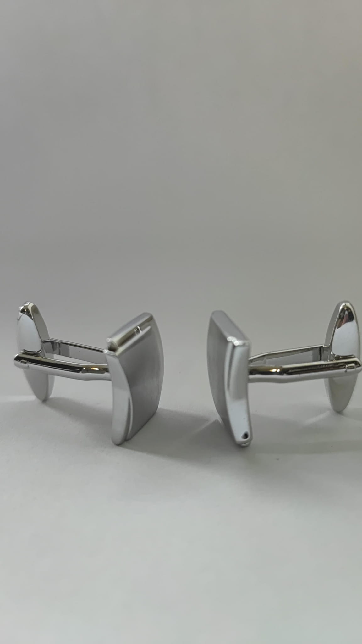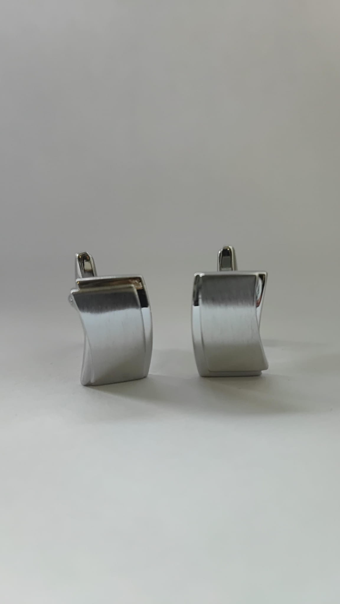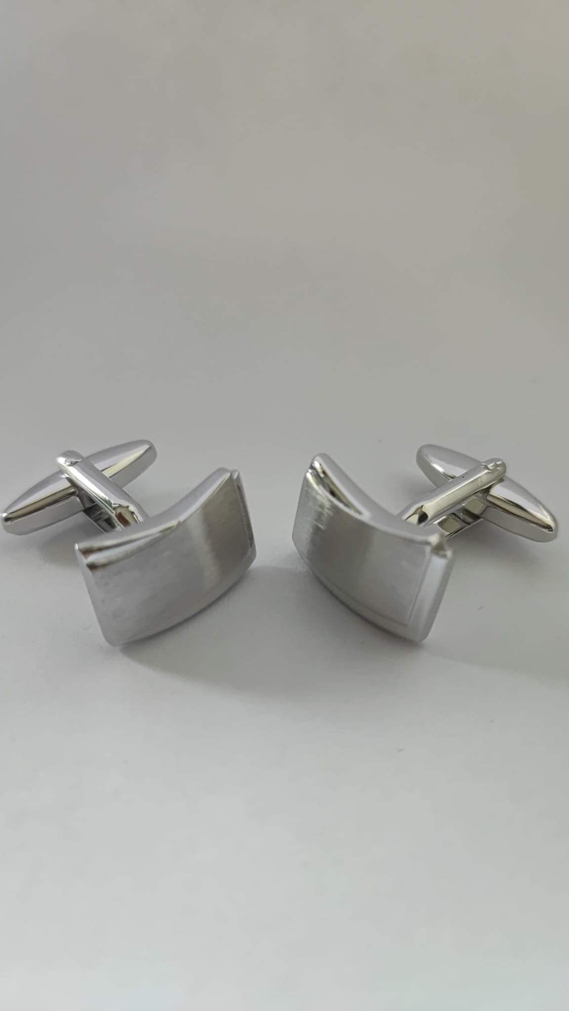 Spinki do mankietów srebrne matowe w kształcie delikatnie wygiętego prostokąta