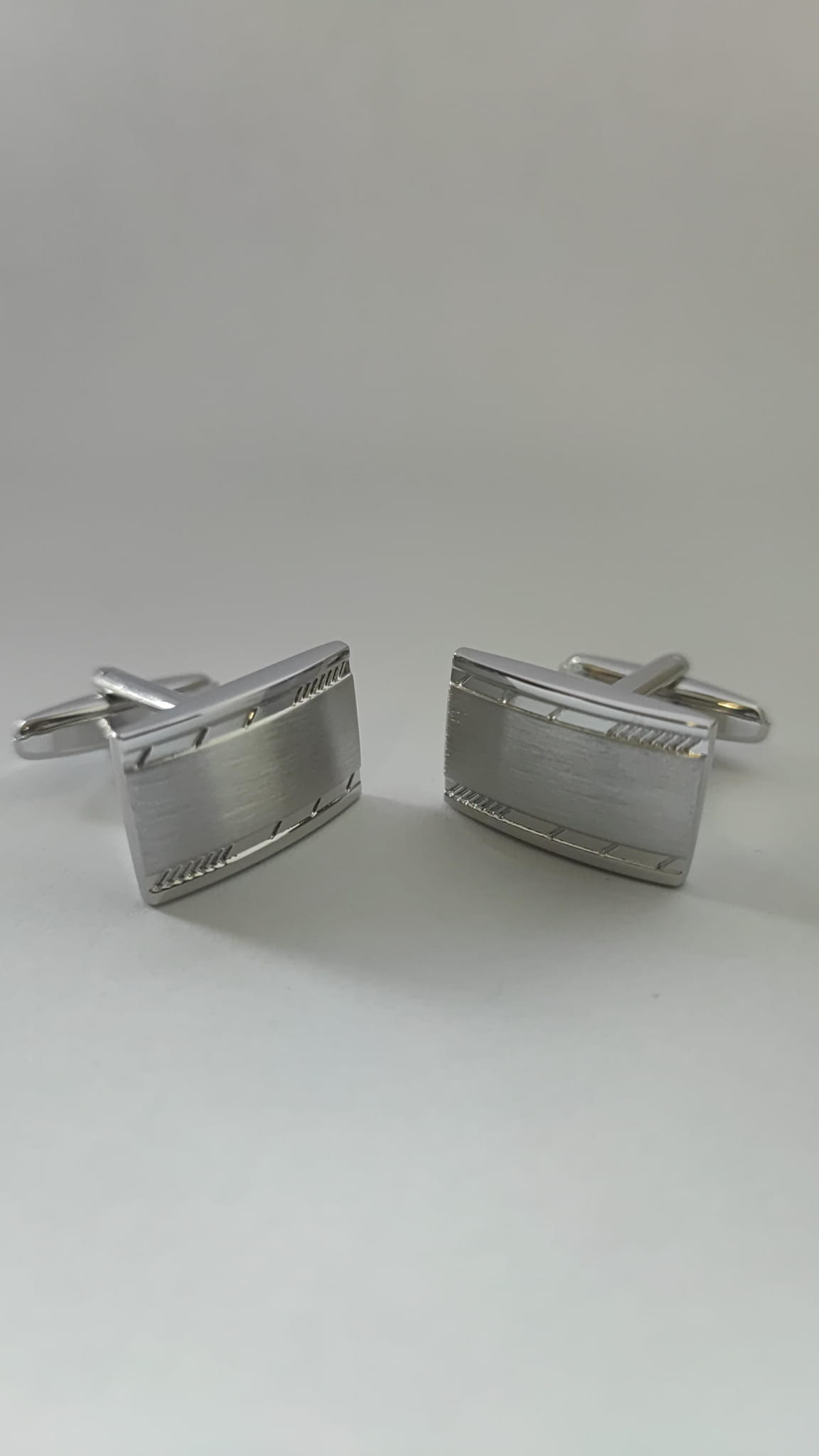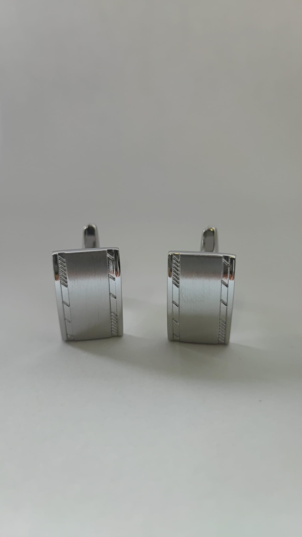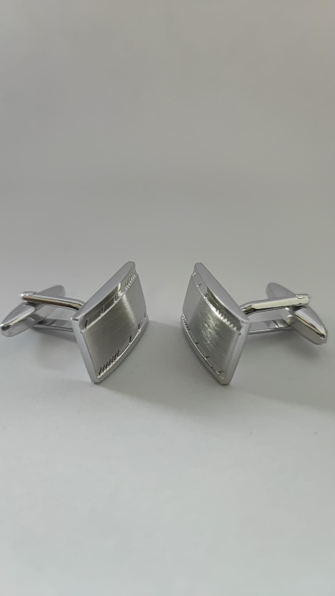 Spinki do mankietów srebrne matowe z aplikacjami o diamentowym szlifie Długość spinki 20 mm Szerokość spinki 12 mm Spinki są zapakowane w gustowne czarne pudełko