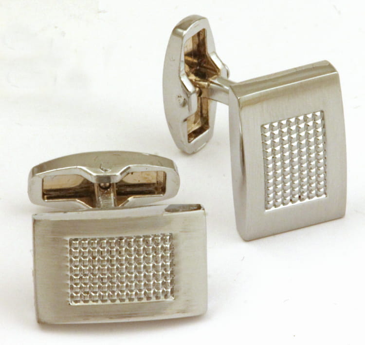 Spinki mankietowe klasyczne, mosiężne, galwanizowane rodem.