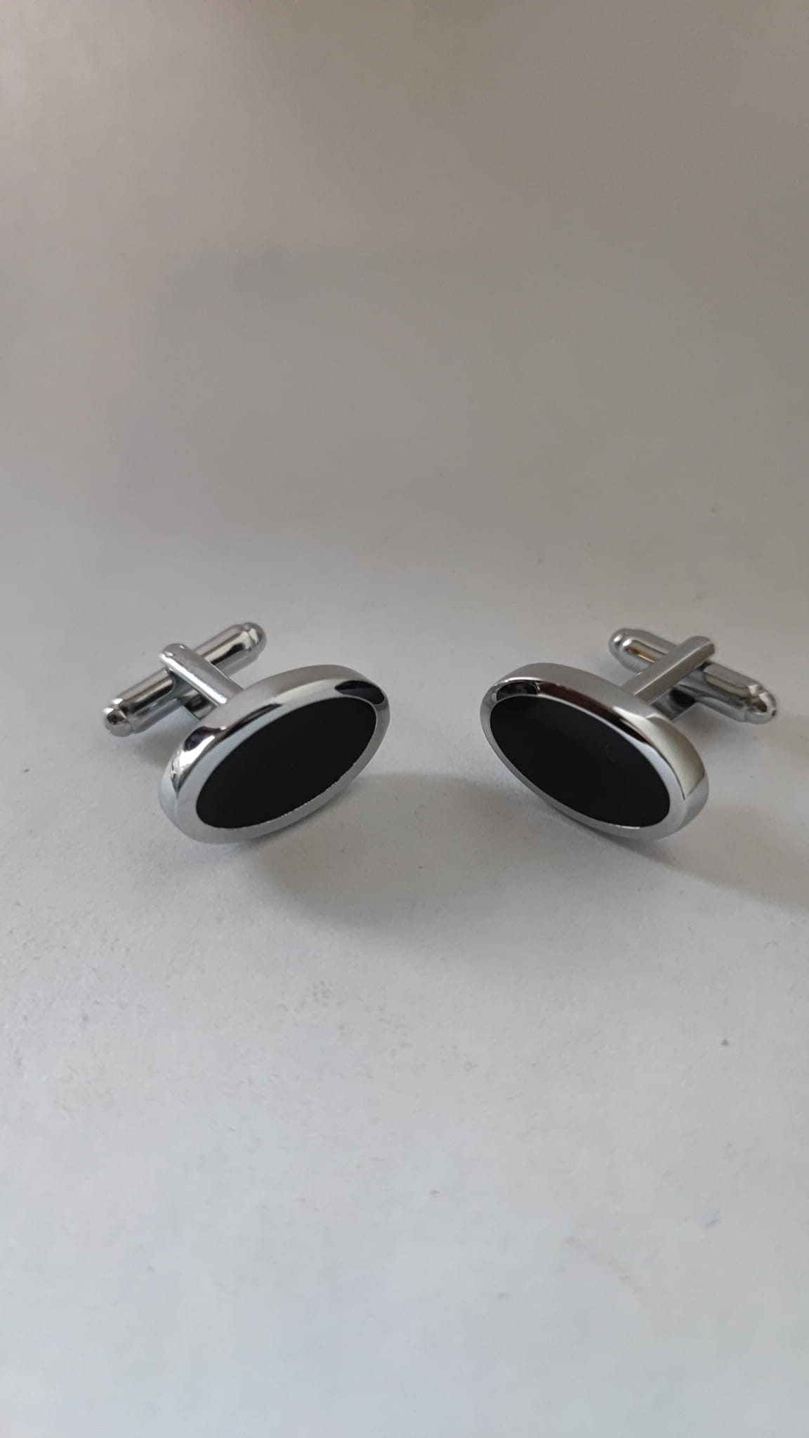 Spinki mankietowe klasyczne, mosiężne, galwanizowane rodem.