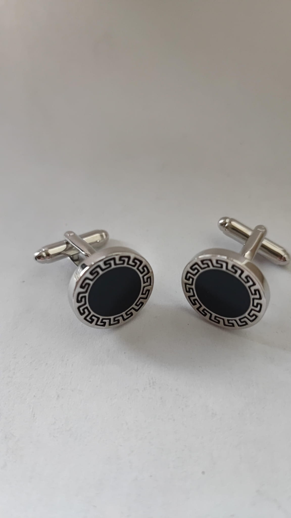Spinki mankietowe klasyczne, mosiężne, galwanizowane rodem.