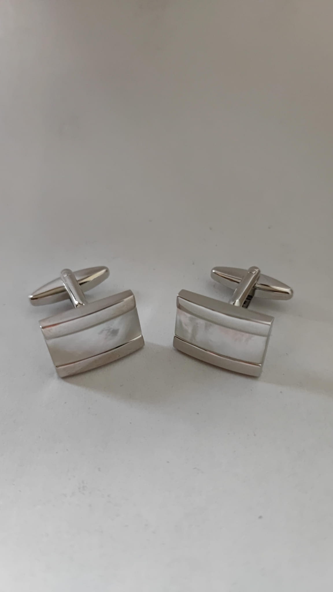 Spinki mankietowe klasyczne, mosiężne, galwanizowane rodem.