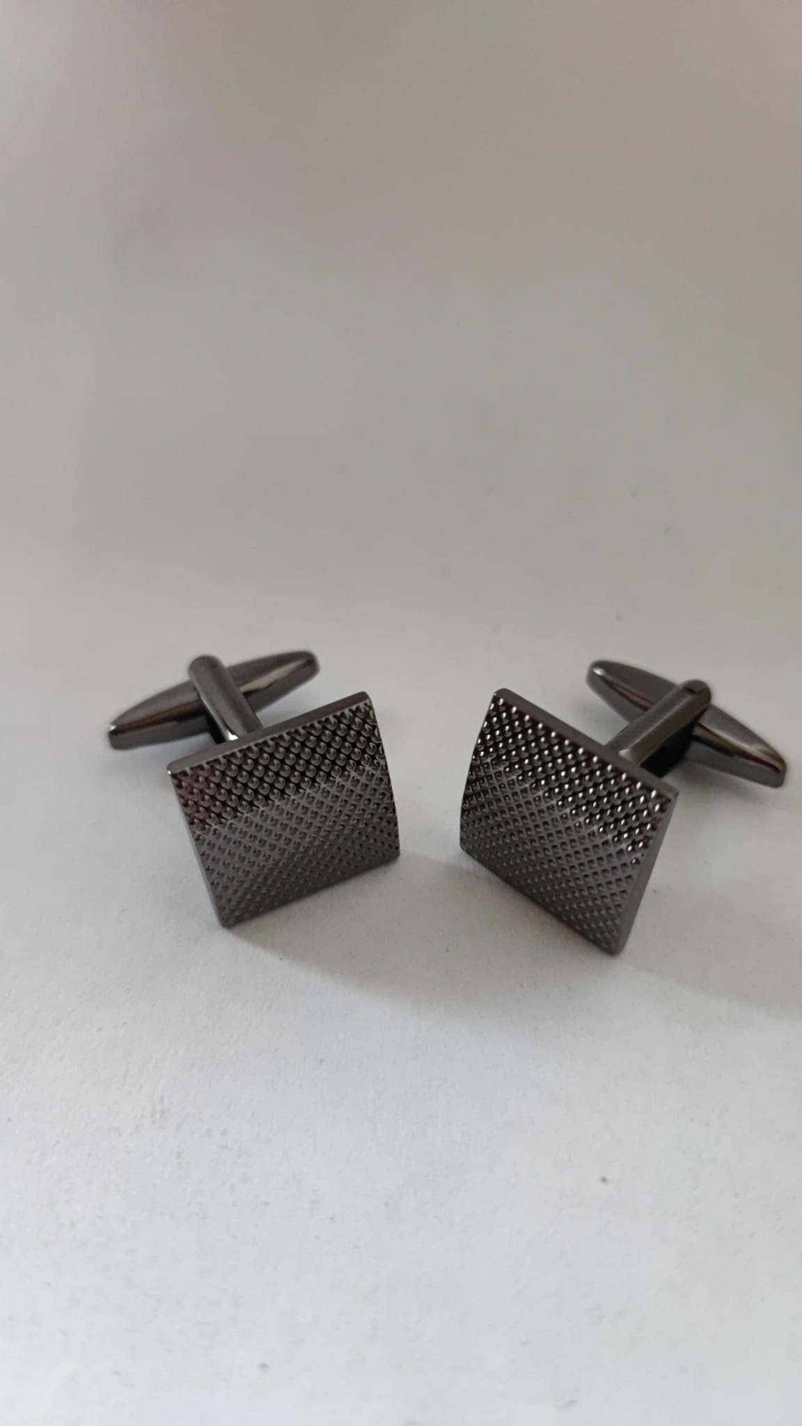 Spinki mankietowe klasyczne, mosiężne, galwanizowane rodem.