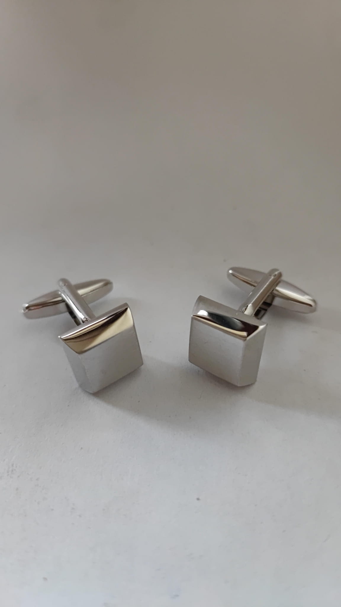 Spinki mankietowe klasyczne, mosiężne, galwanizowane rodem.