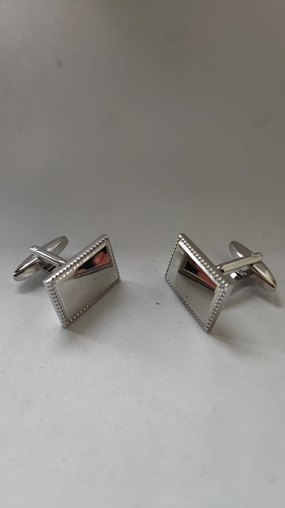 Spinki mankietowe klasyczne, mosiężne, galwanizowane rodem.