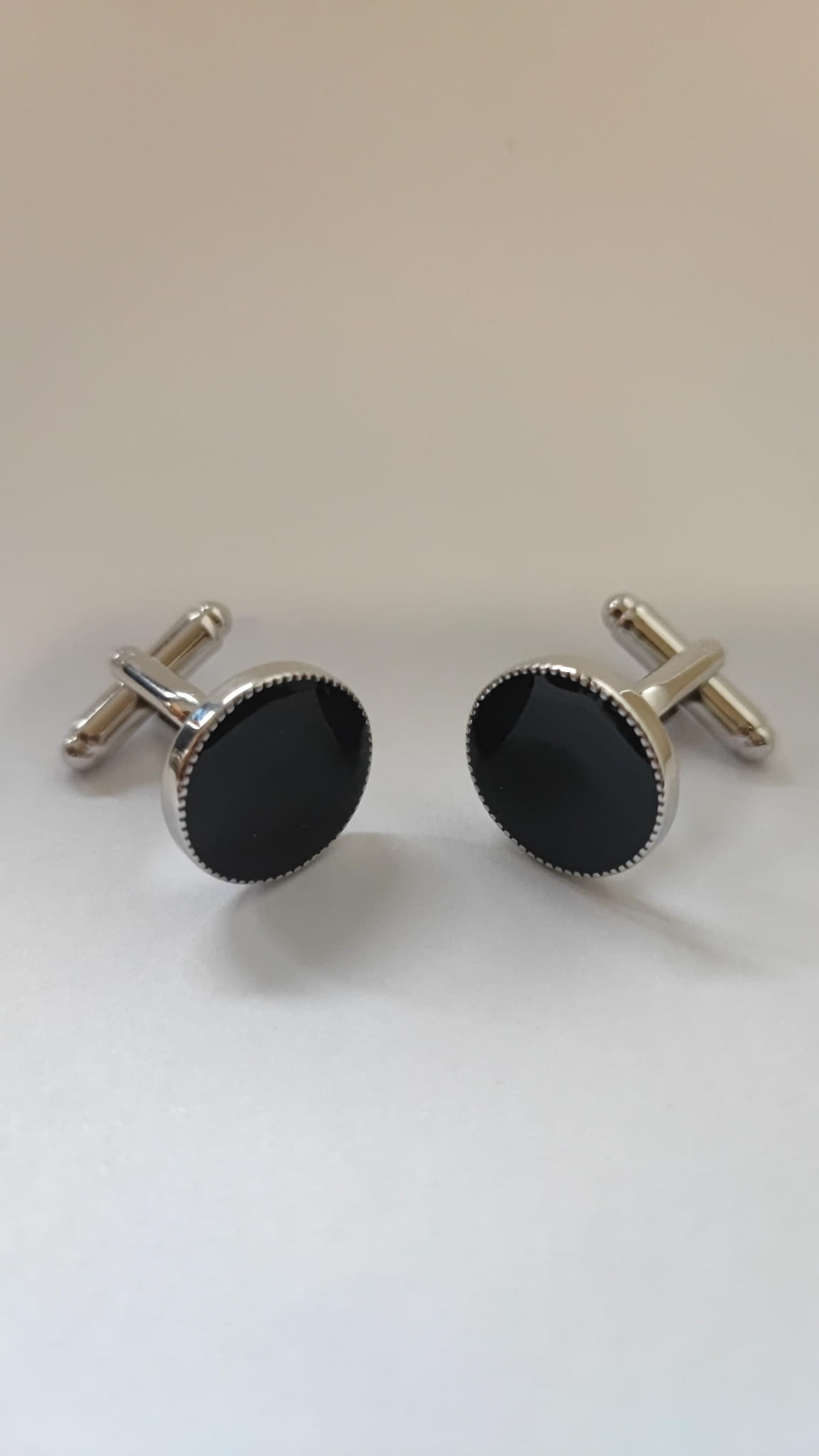 Spinki do mankietów/smokingowe w kolorze srebrnym z czarną emalią