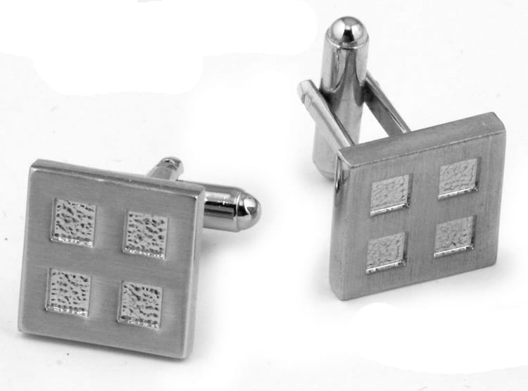 Spinki mankietowe klasyczne, mosiężne, galwanizowane rodem.