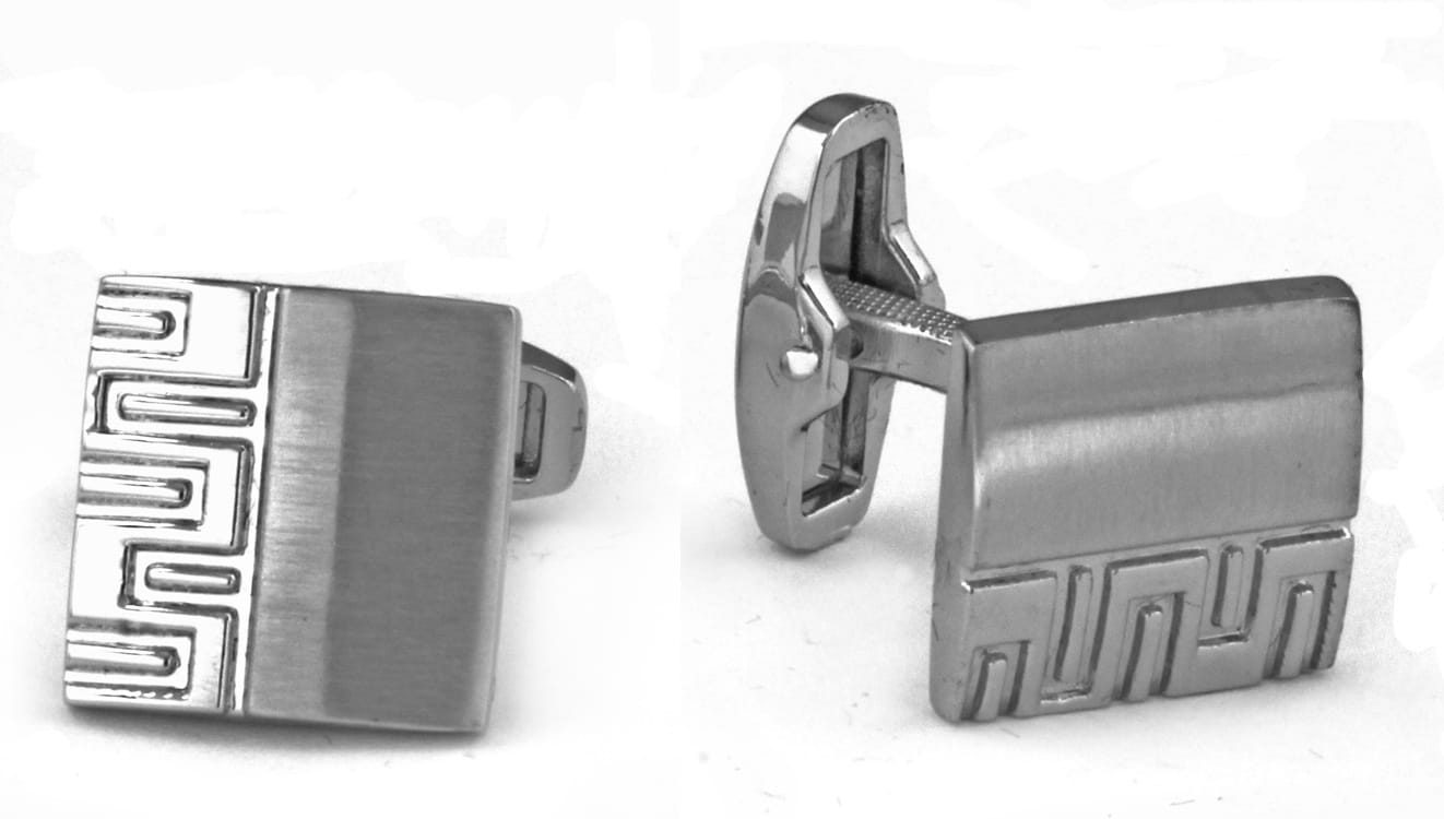 Spinki mankietowe klasyczne, mosiężne, galwanizowane rodem.