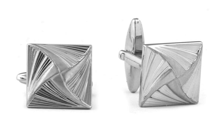Spinki mankietowe klasyczne, mosiężne, galwanizowane rodem.