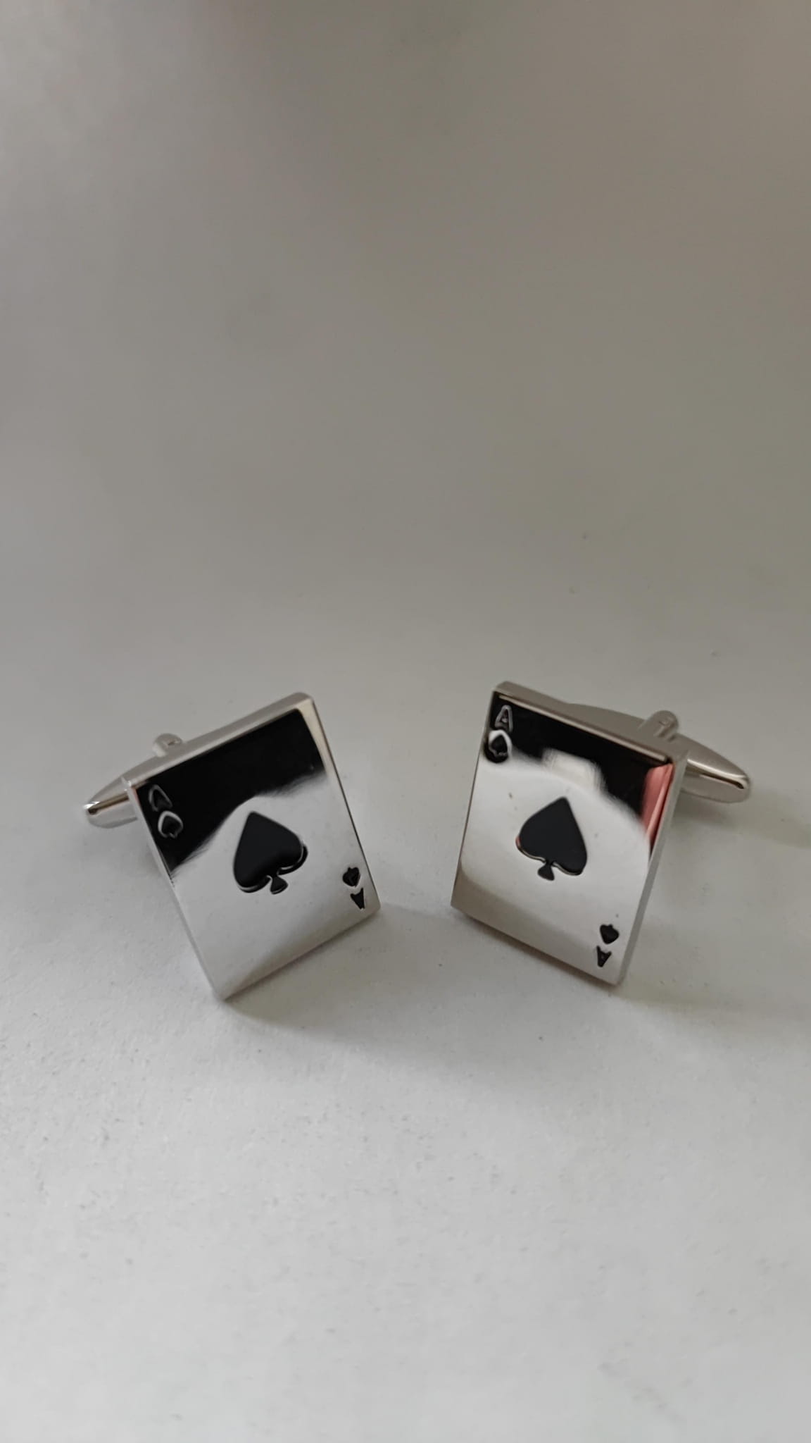 Srebrne spinki do mankietów AS Pik symbol karciany wykonany z wysokiej jakości emalii.