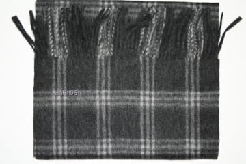 Szal wełniany, 100% wełny owczej, czarny w białą kratkę